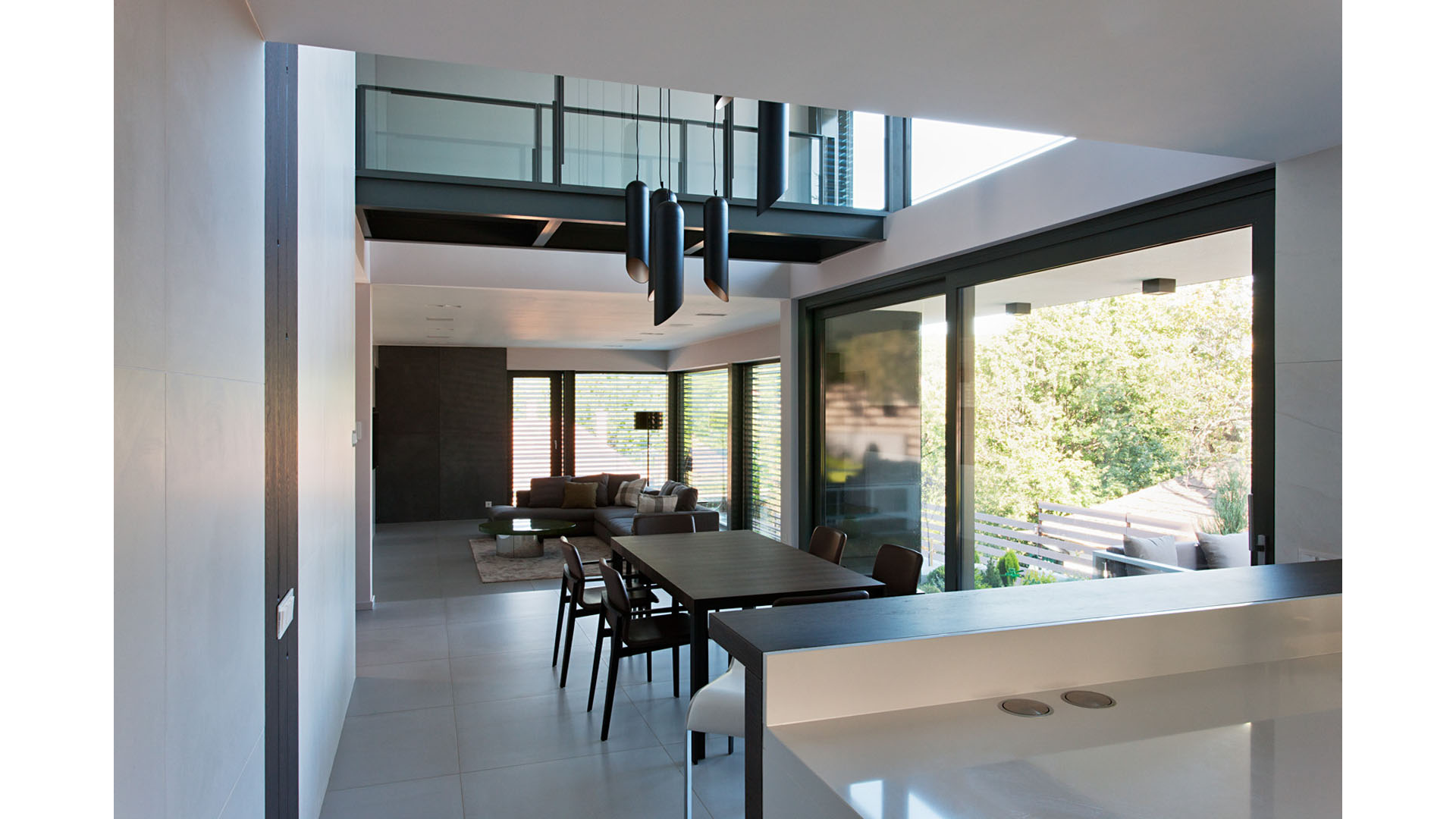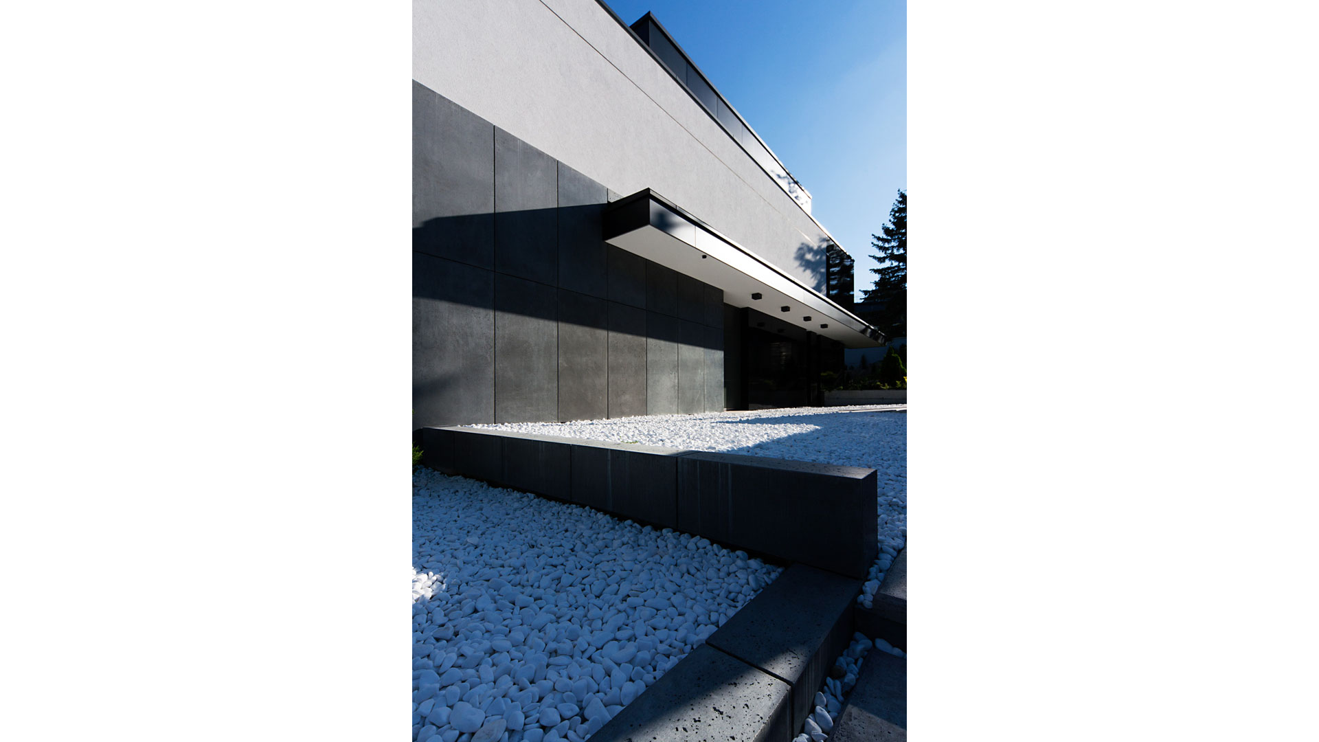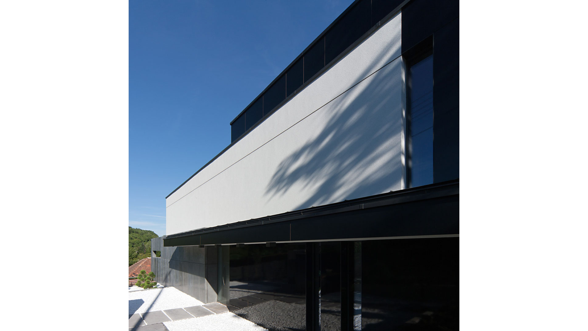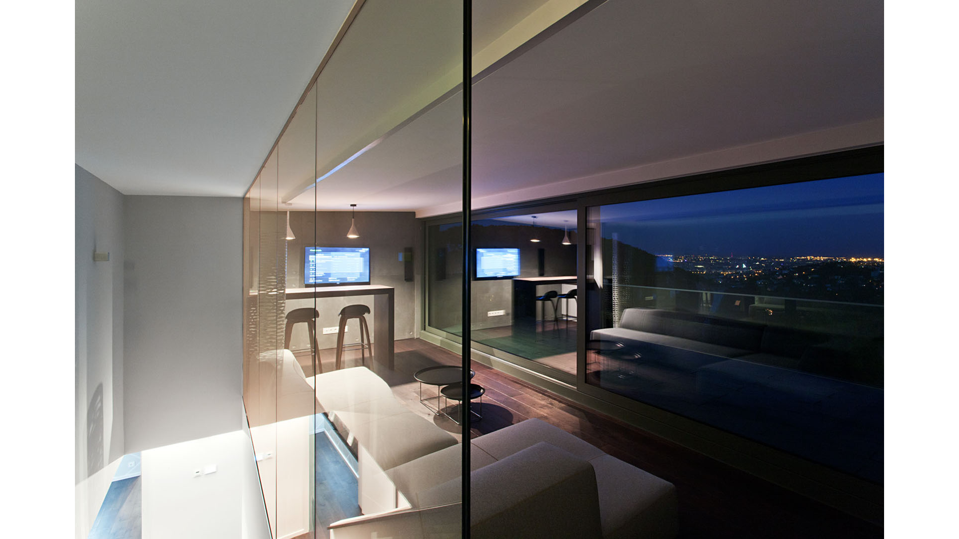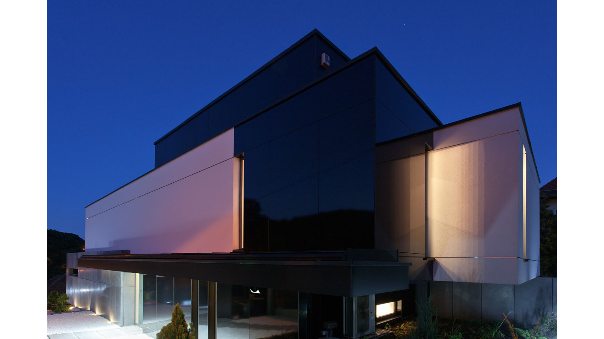 315 m2, lebegő tömegek, terepre illesztve, utca felé zárt telepítés, tetőfelépítmény pazar kilátással