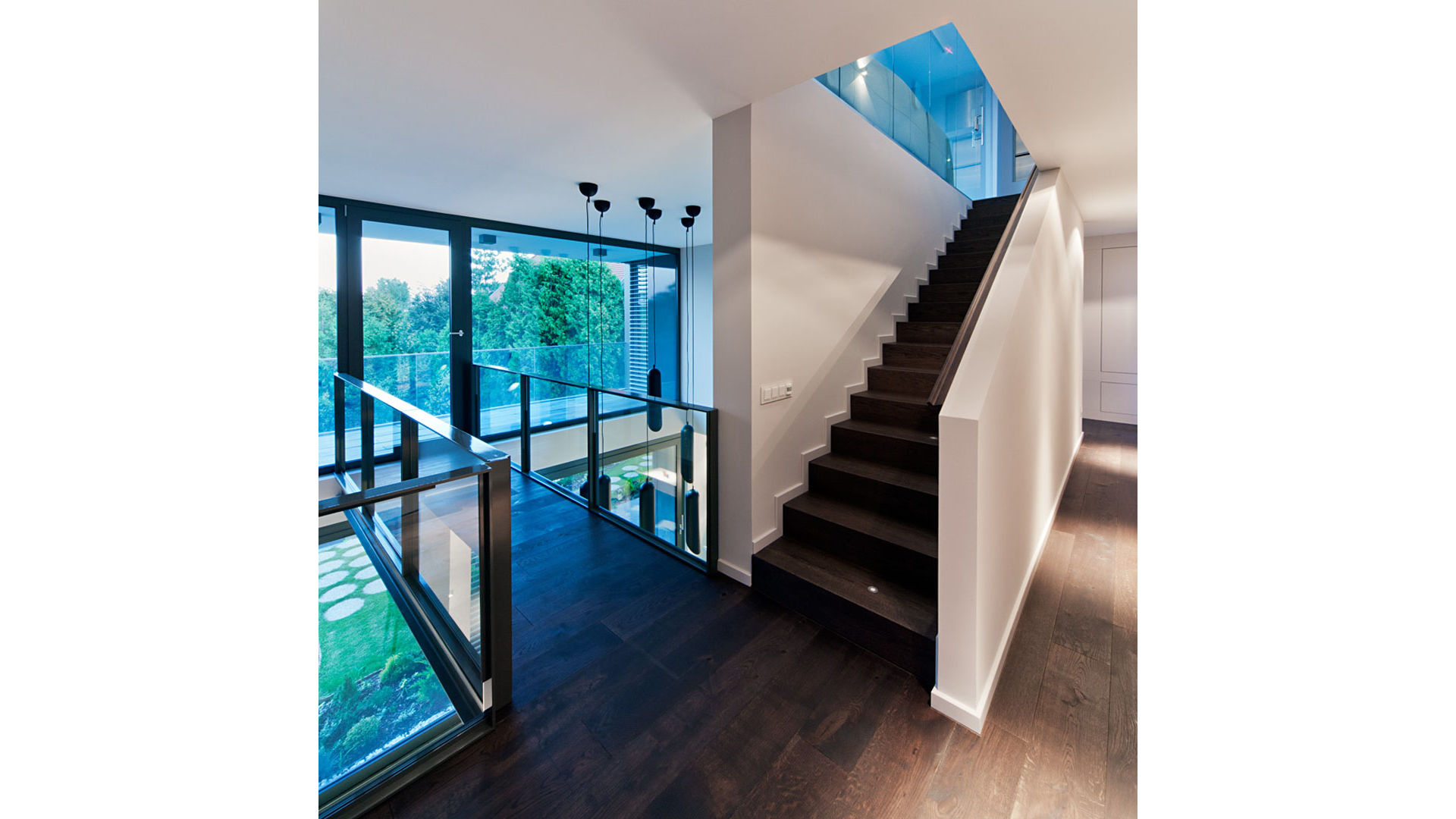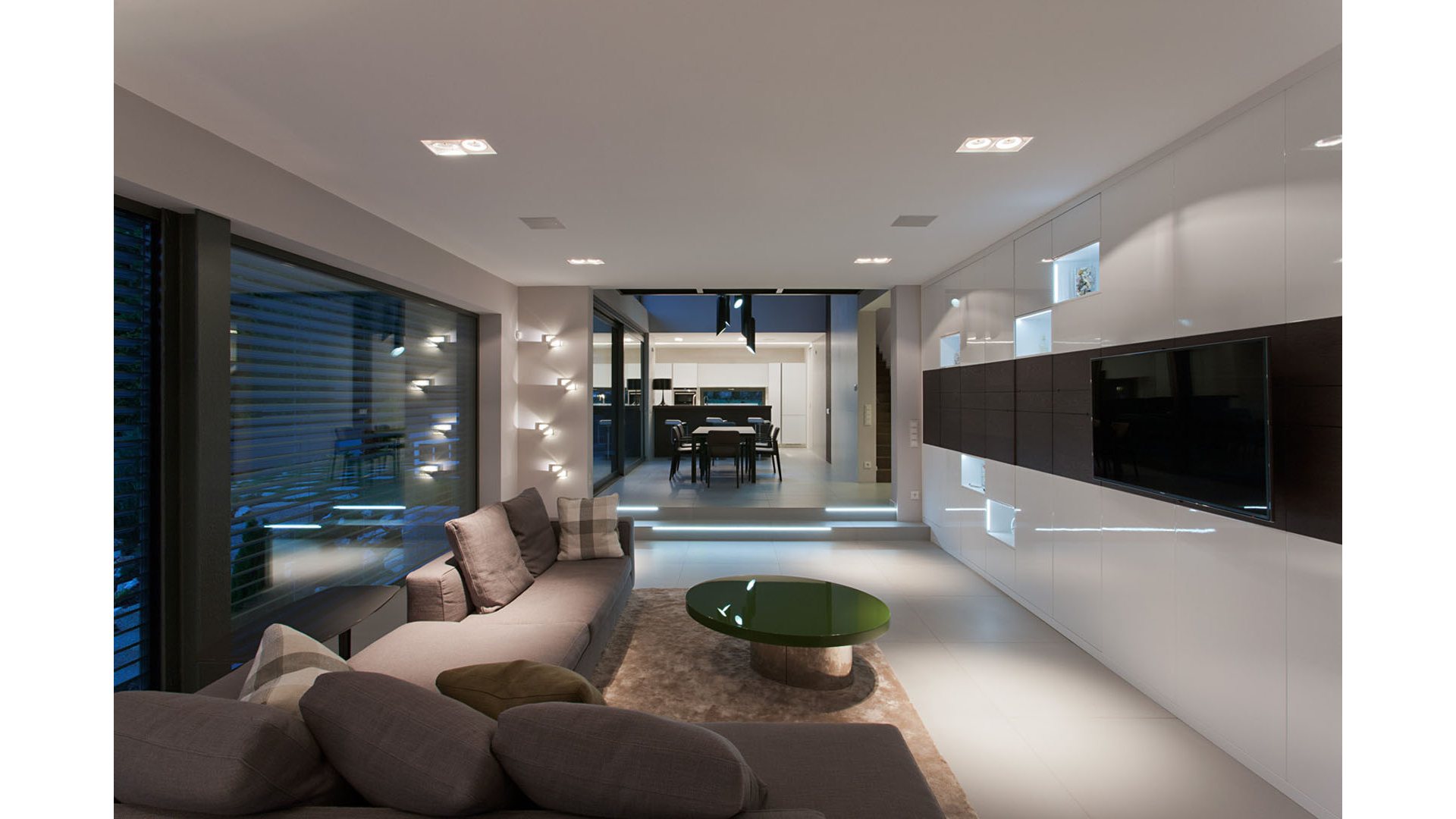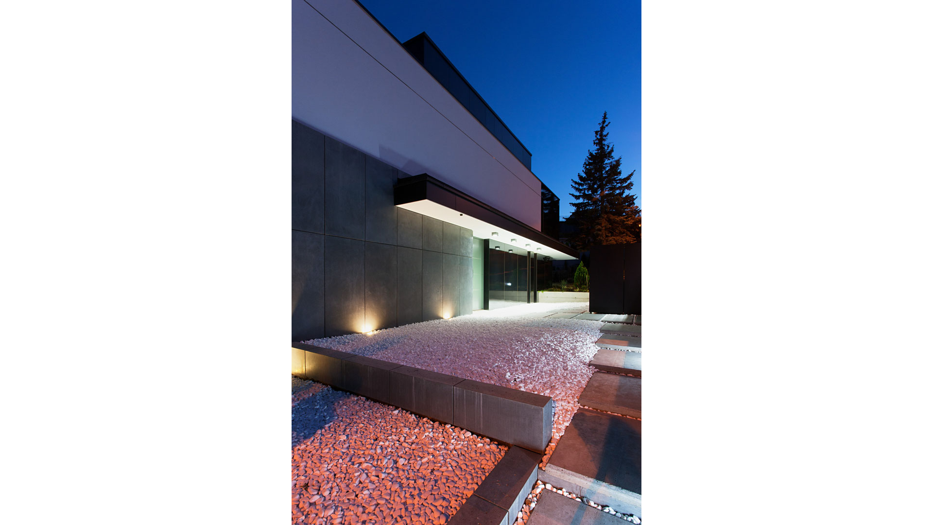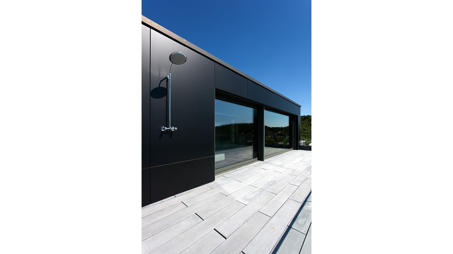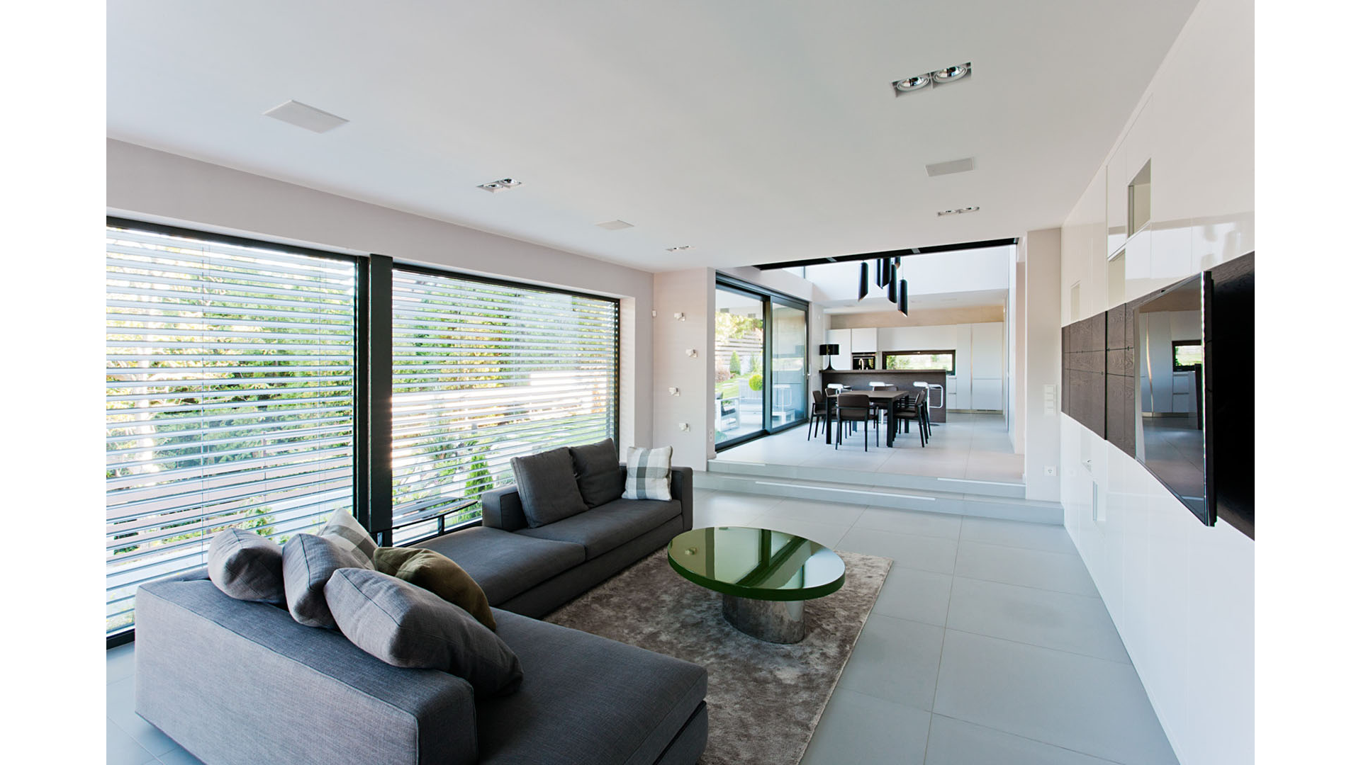 315 m2, lebegő tömegek, terepre illesztve, utca felé zárt telepítés, tetőfelépítmény pazar kilátással